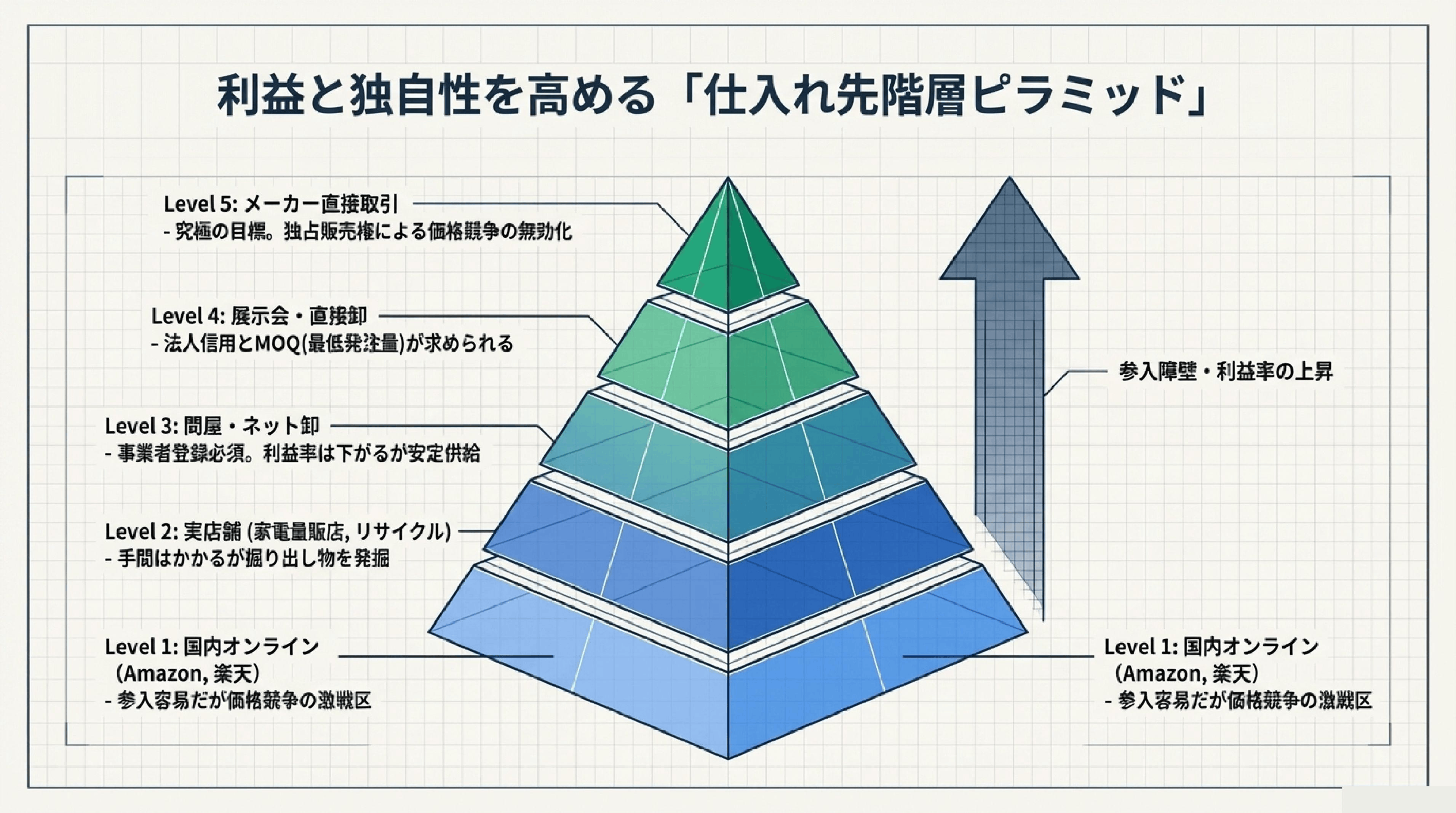 無在庫販売の仕入先はAmazon.co.jpが基本ですが、楽天・ヤフーショッピング・メーカー直接仕入れも組み合わせることで利益率を高められます。