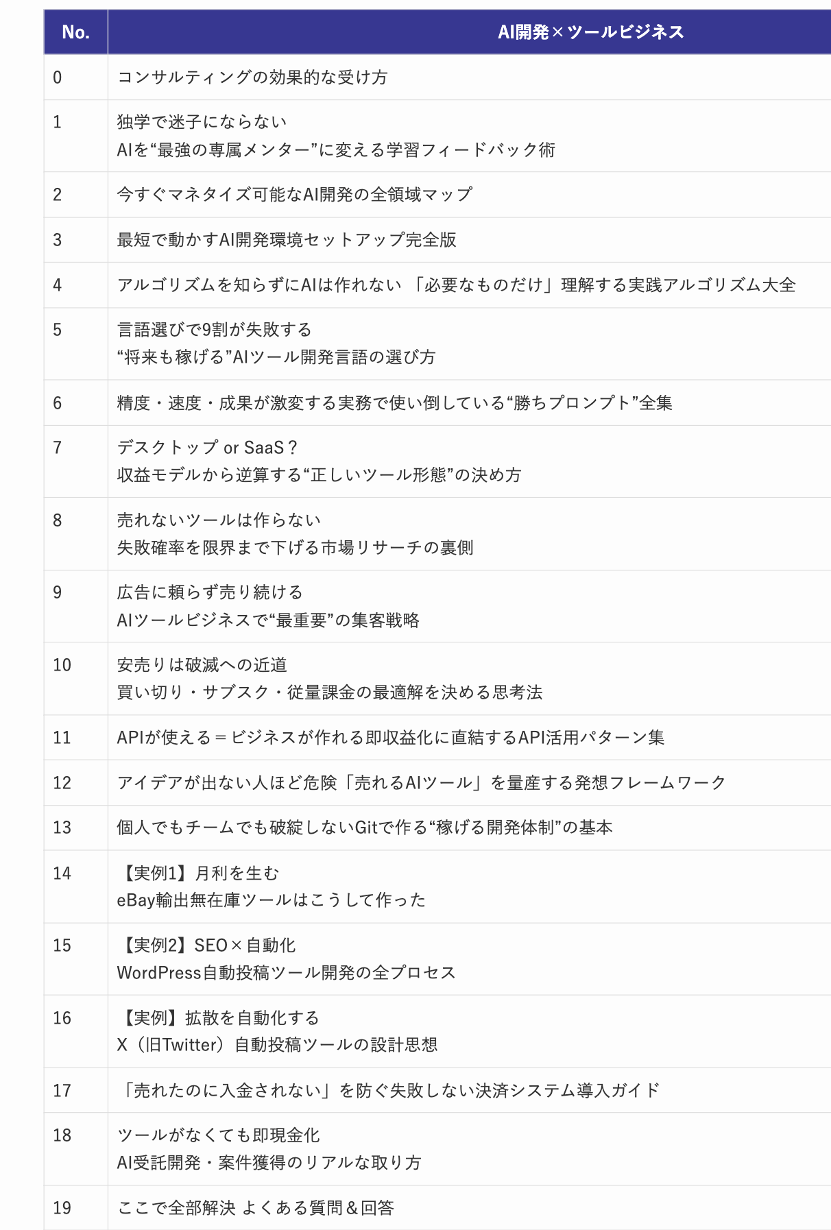 私自身はツールビジネスももう行わないのでアンチテーゼも込めてAI活用によるツールの作り方に加えツールビジネスの育て方そのものもコンテンツにすることにしました。業界を破壊しかねないかもしれませんが10年後にはツールを自分で作る時代になりますしその時を早めただけです。